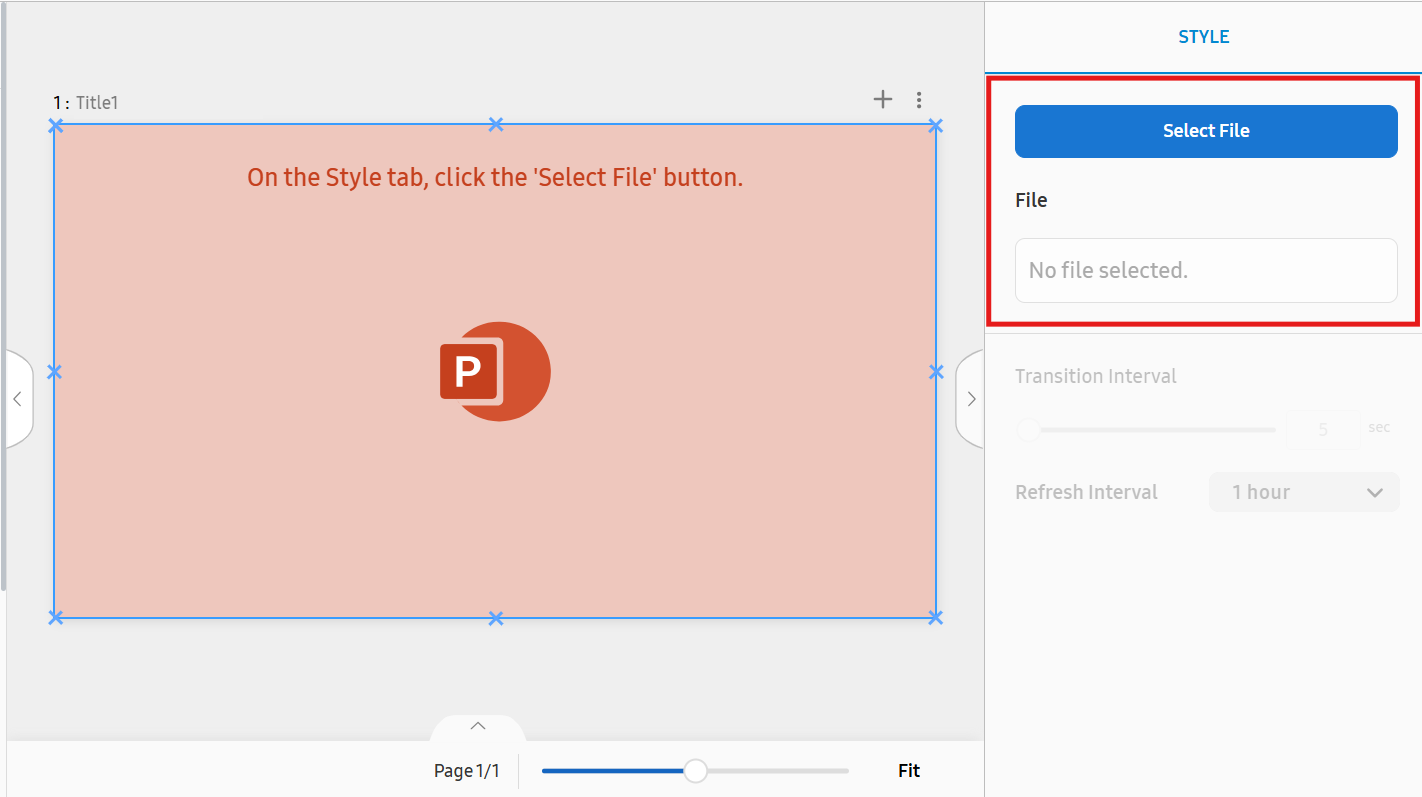 Das Übergangsintervall und das Aktualisierungsintervall können nur festgelegt werden, nachdem der Microsoft PowerPoint-Inhalt ausgewählt wurde und die Folienbilder angezeigt werden.