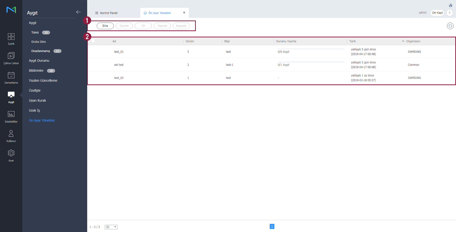 Ön ayarları ekleyip, düzenleyip, silip, yayınlayıp, kopyalayabilir ve kayıtlı ön ayarların ayrıntılarını görüntüleyebilirsiniz.