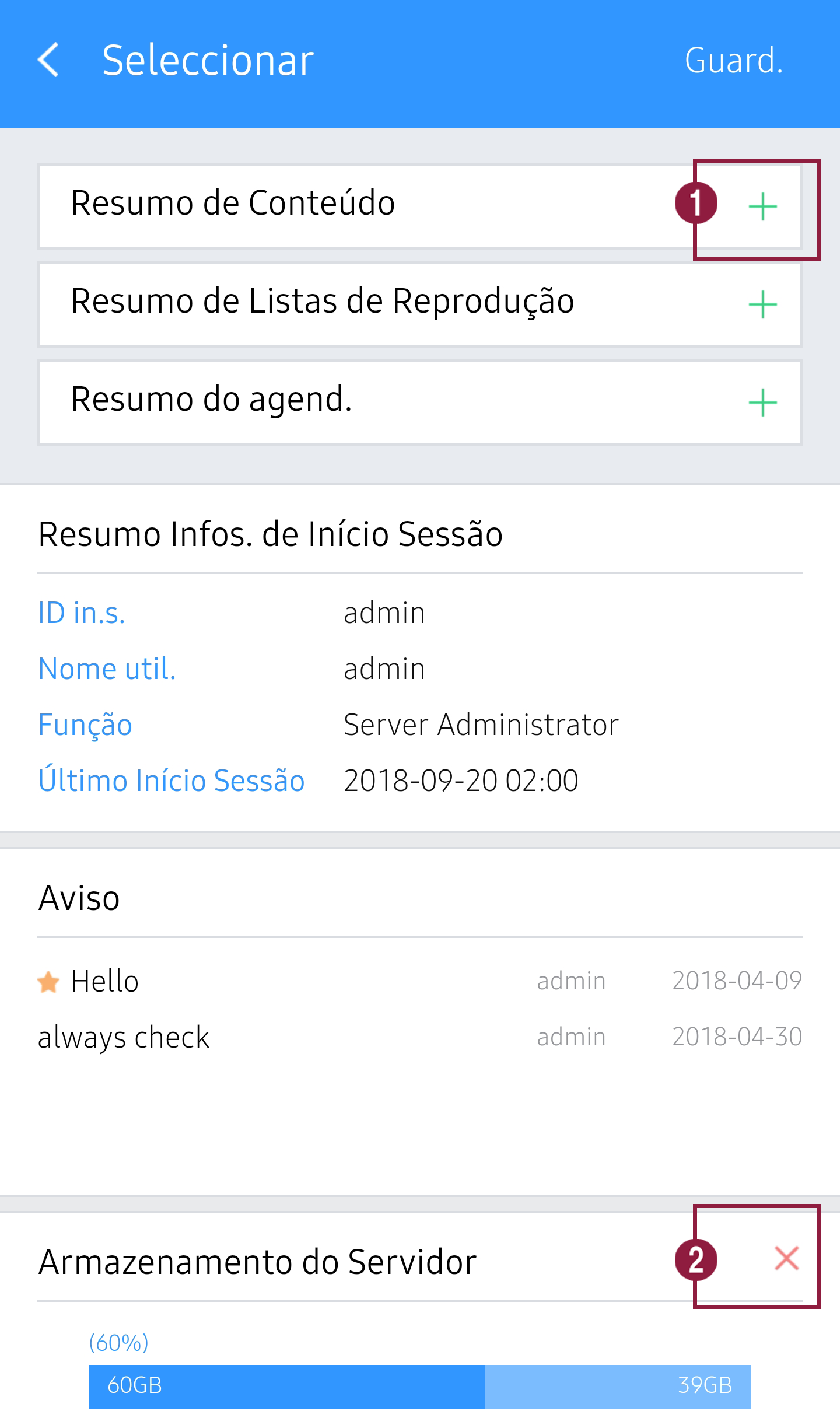 Recorra à pré-visualização para especificar os itens que serão apresentados no painel de controlo do Mobile.