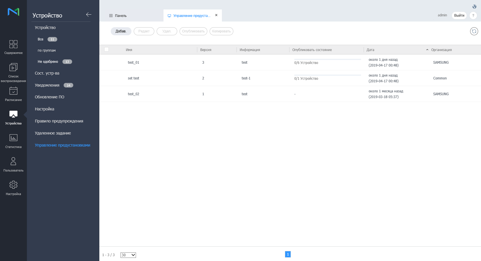 Опубликовать предустановку