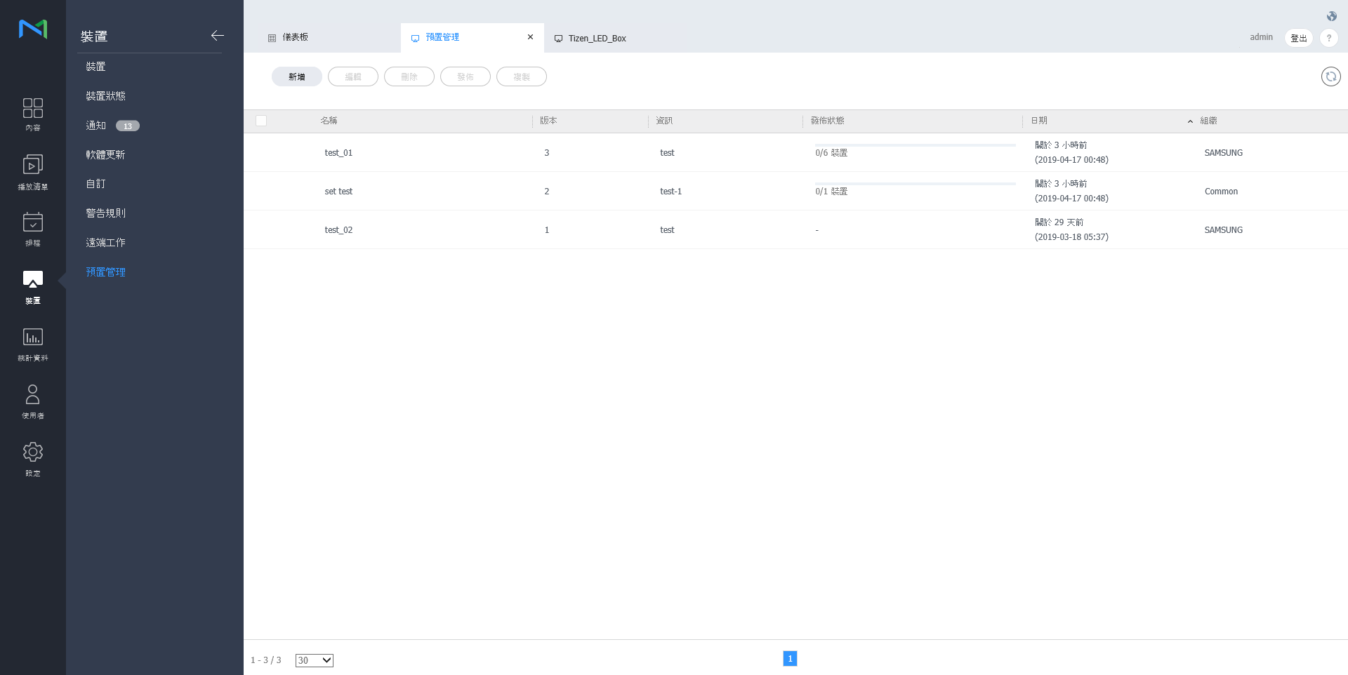 發佈預設