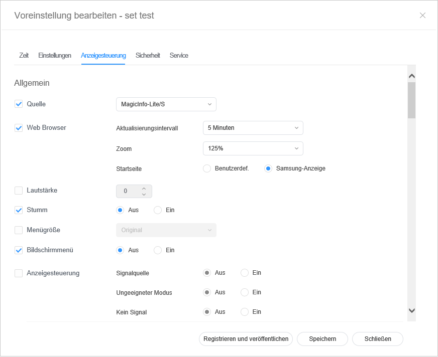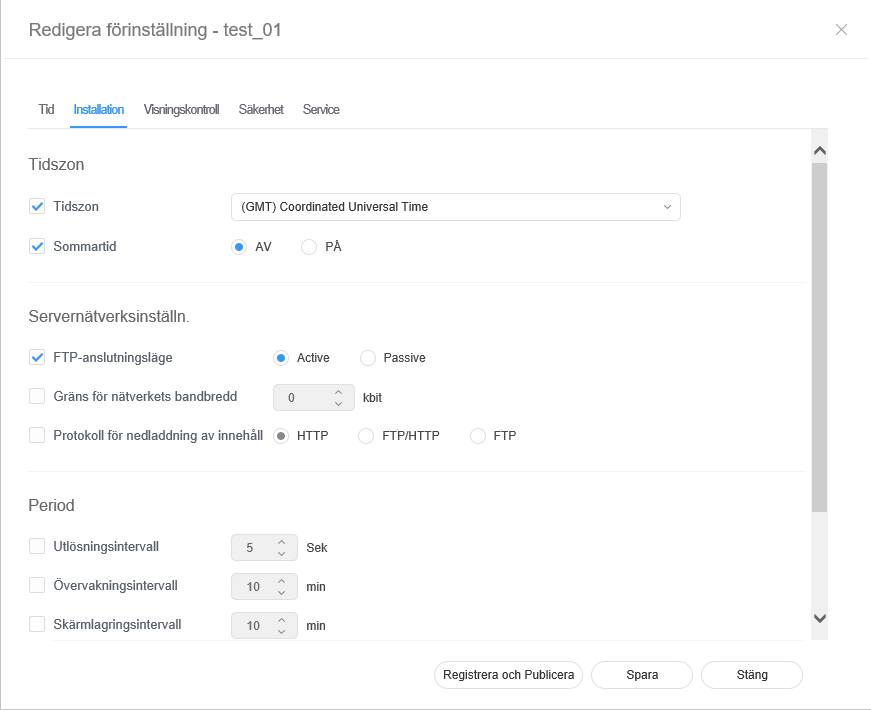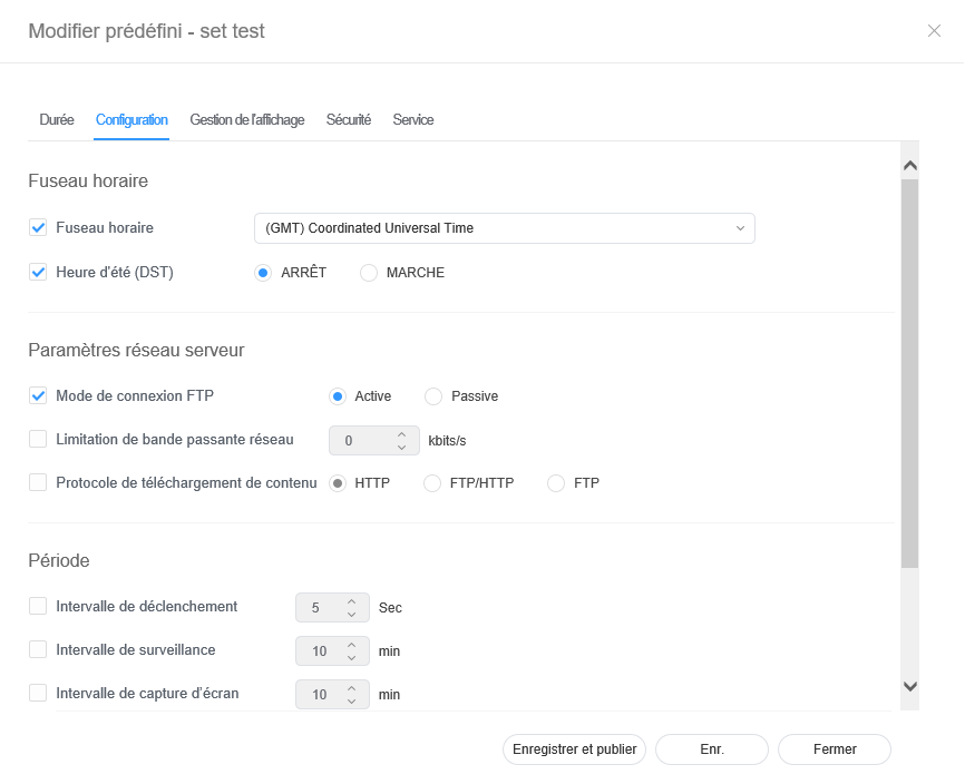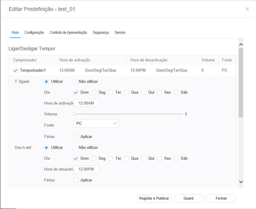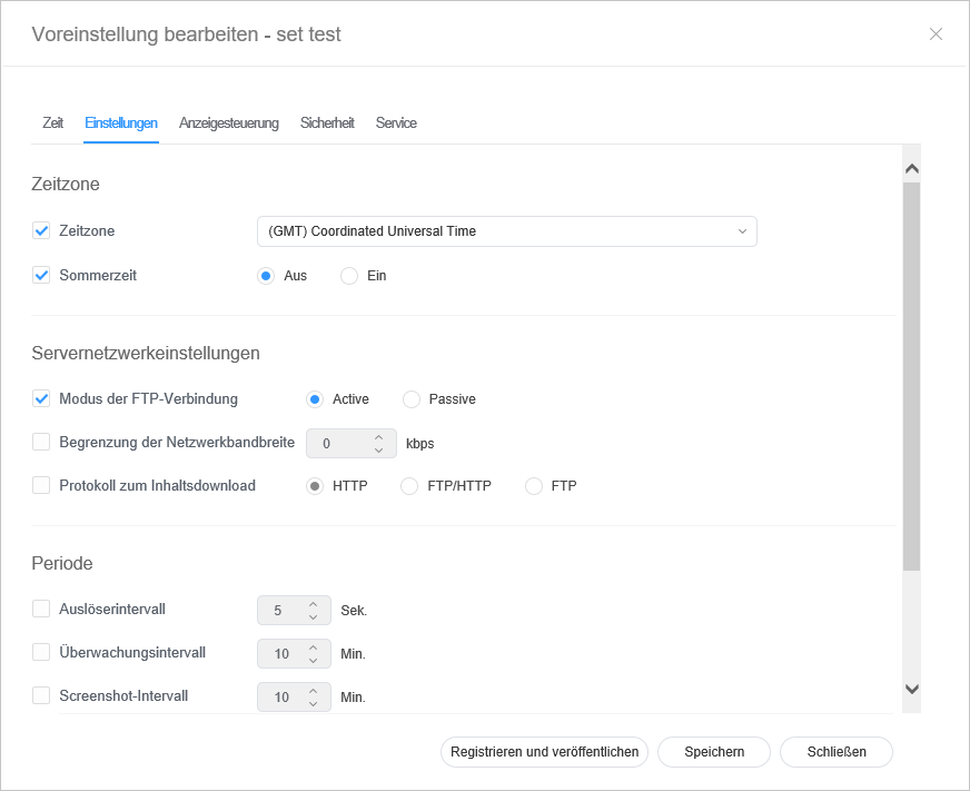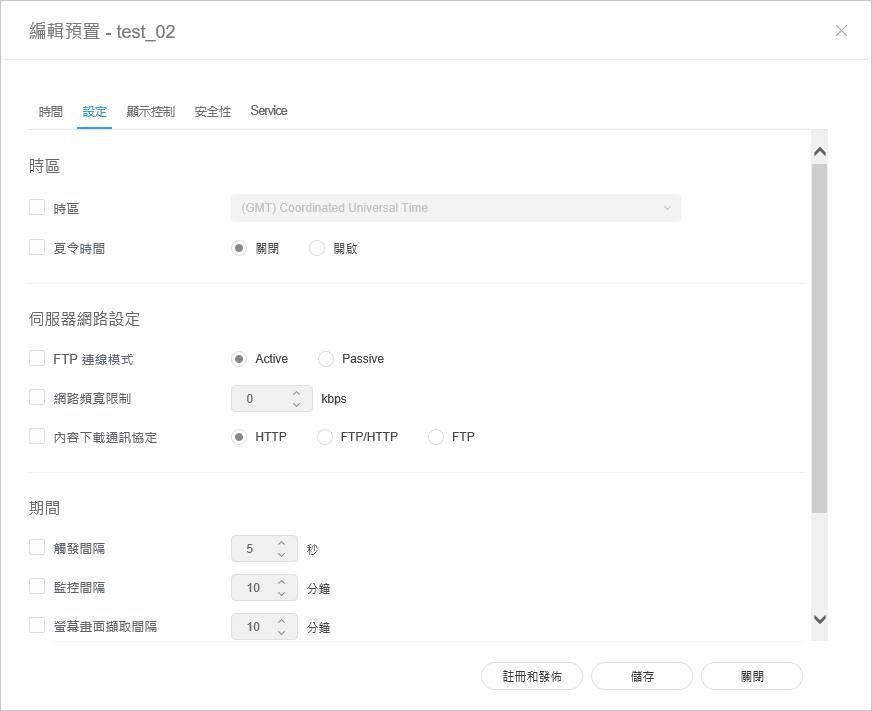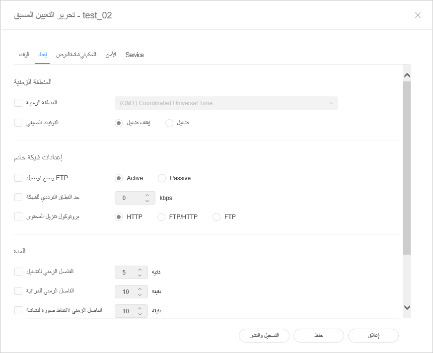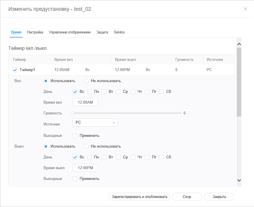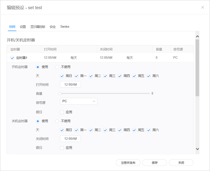 5. Configure the time and click Save. Click Register & Publish to immediately apply the set value to a group.
