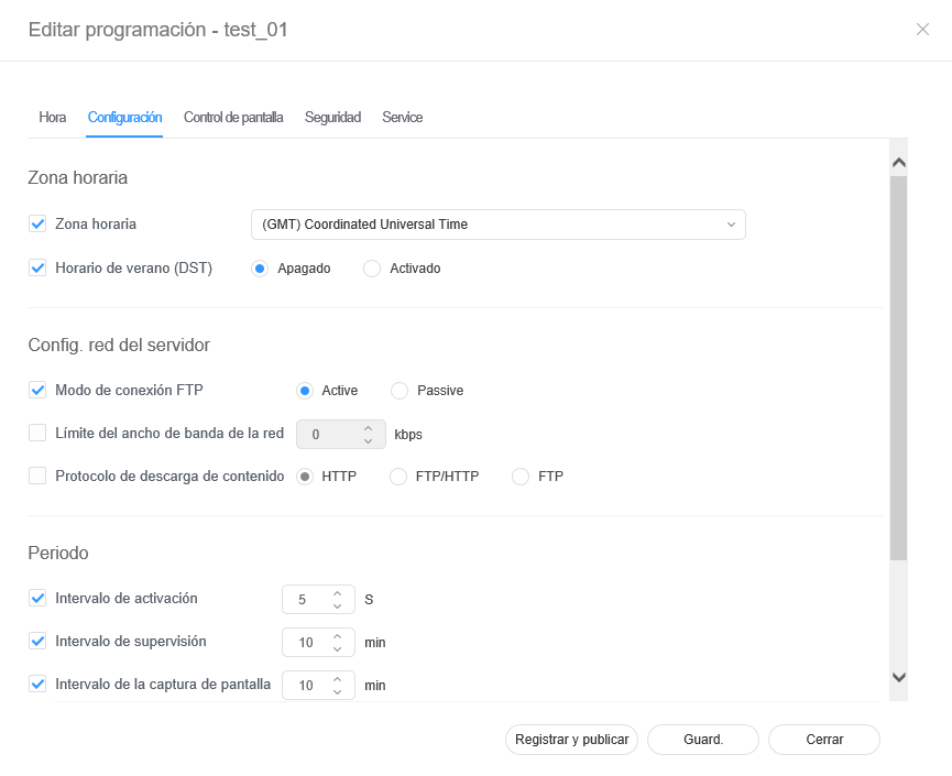 • Intervalo de captura de pantalla: Especifique el ciclo de captura de pantalla.