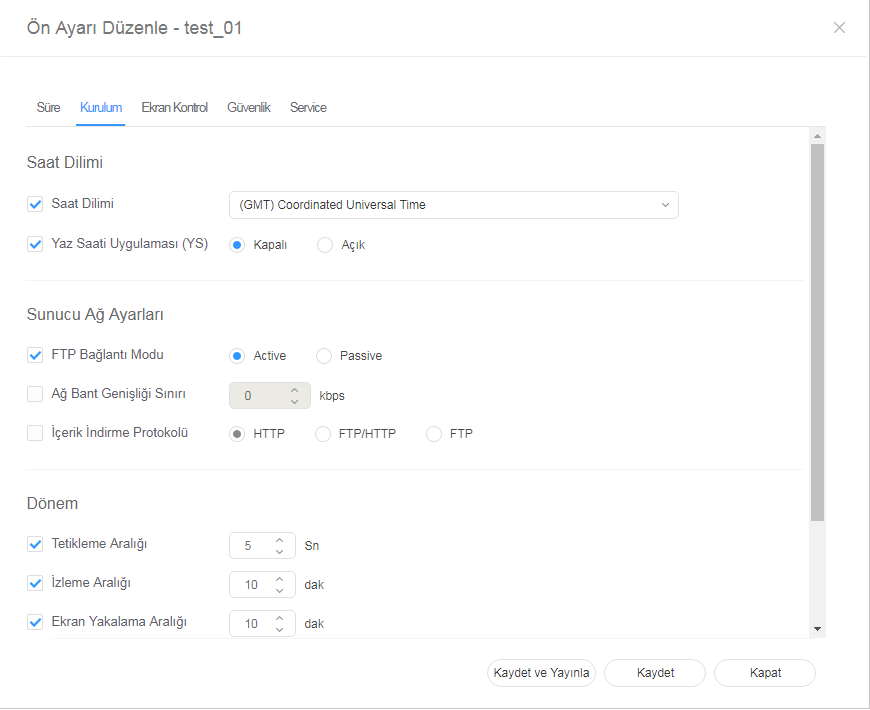 • FTP Bağlantı Modu: FTP bağlantı modunu yapılandırın.