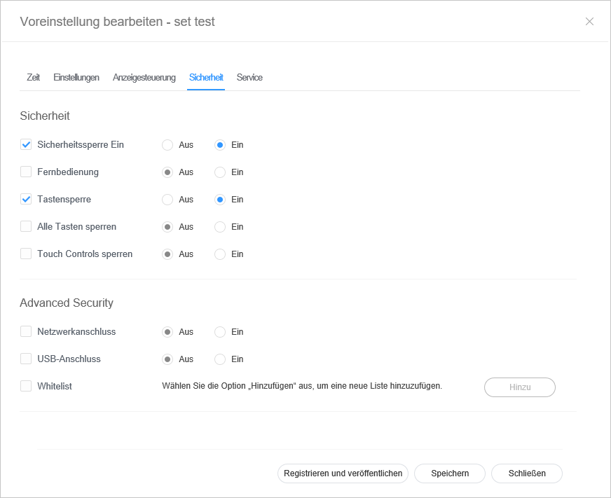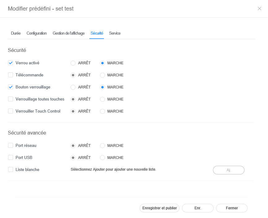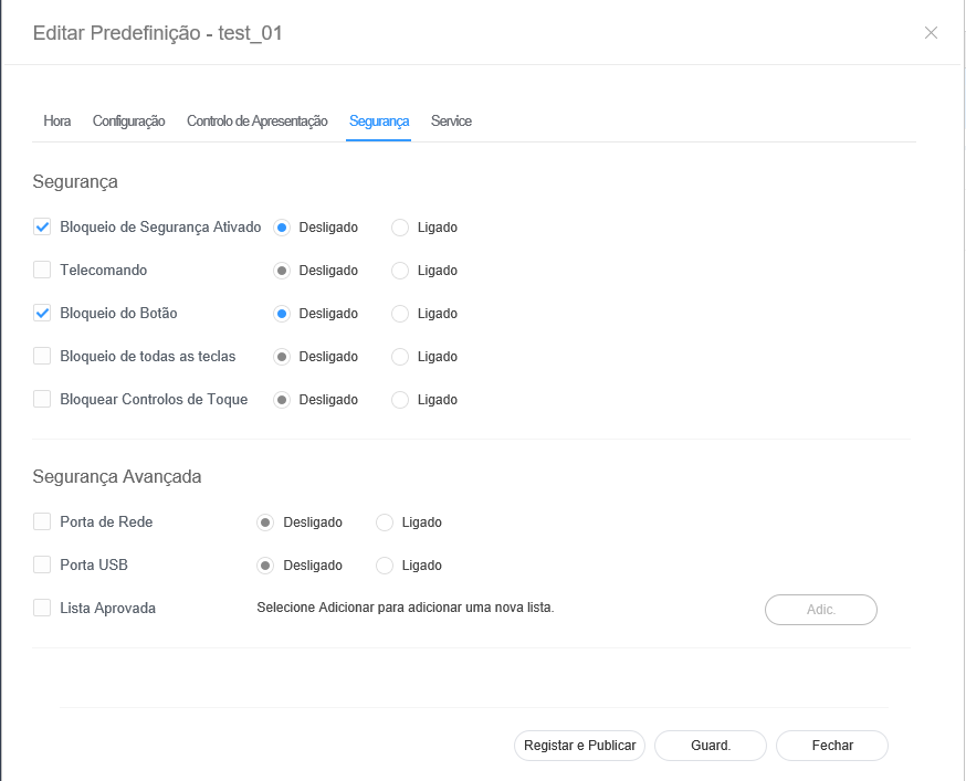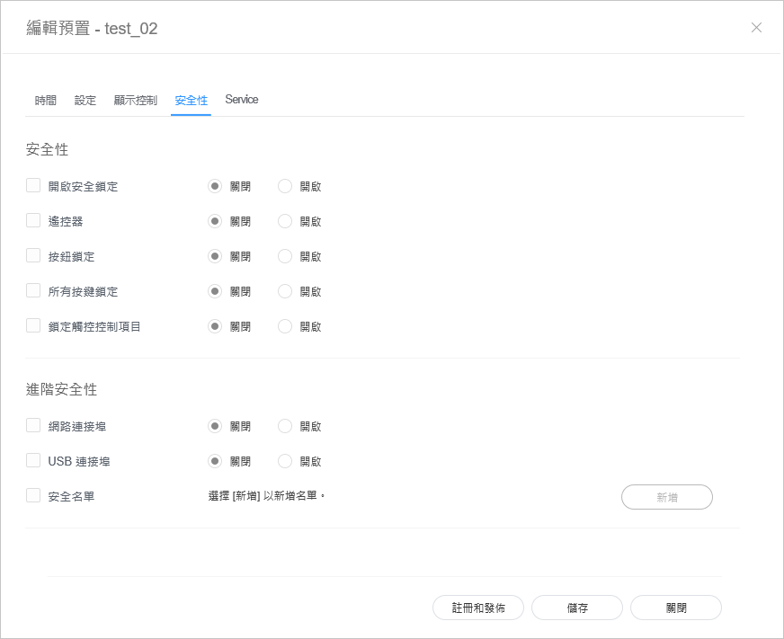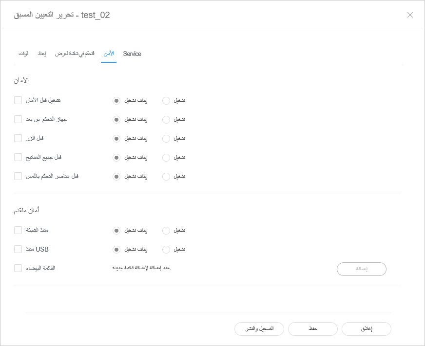 1. Ön ayar düzenleme penceresinde Güvenlik sekmesini seçin.