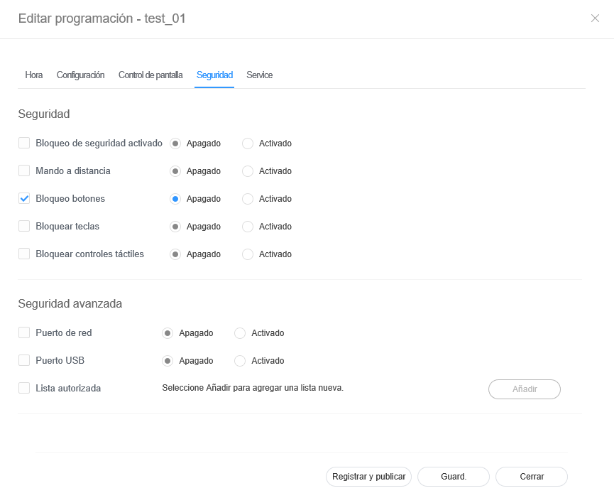 Control de festivosFestivo: asigne festivos para impedir al dispositivo que funcione en días concretos.