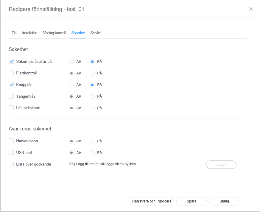 1. Välj fliken Säkerhet i fönstret för redigering av förinställningar.