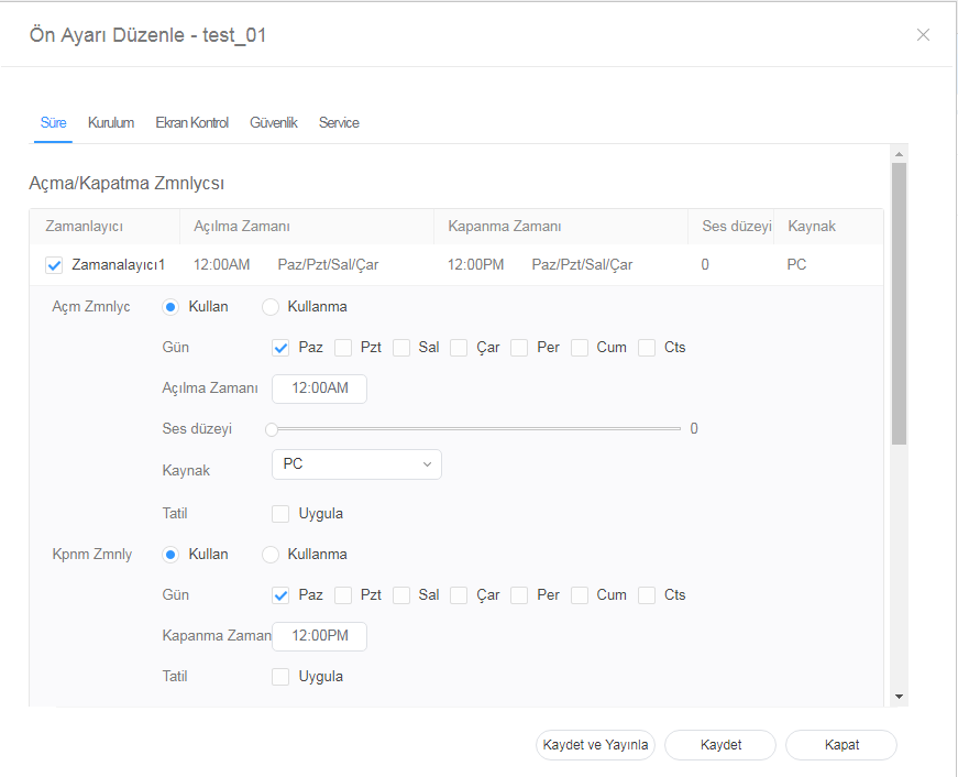 • Sistem Yeniden Başlatma Aralığı: Sistem yeniden başlatma aralığını belirtin.