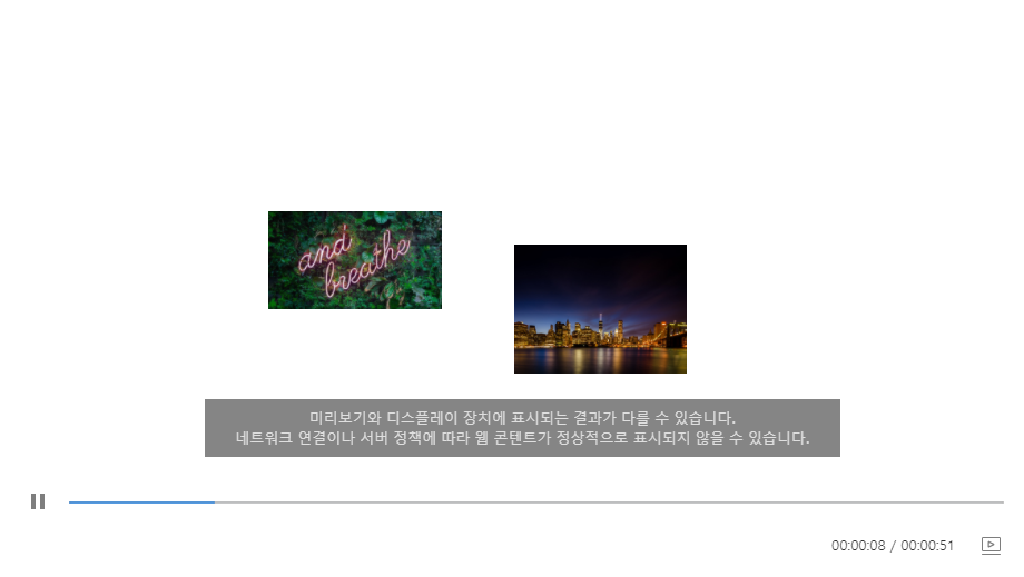 Display defaultW Player API는 W Player를 위한 다양한 응용 Web Content 요소를 생성할 수 있게 합니다.