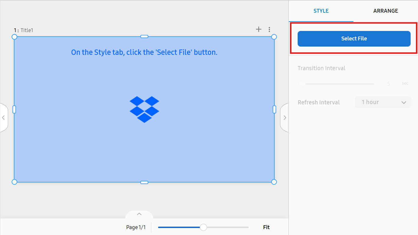 The Transition Interval or Refresh Interval can only be specified after the Dropbox content has been selected and the slideshow is displayed.