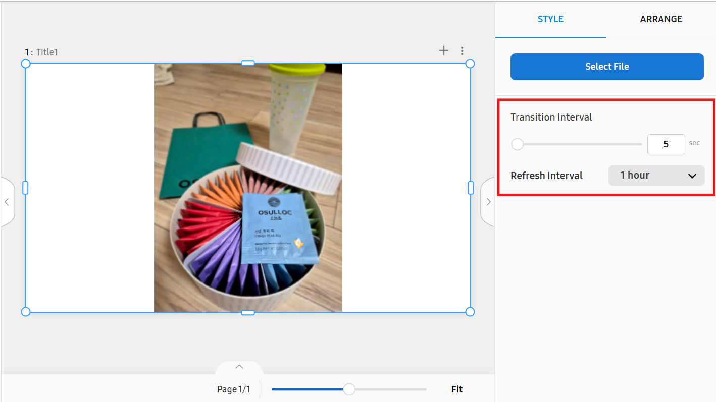 If only one image or video is contained inside the folder, the Transition Interval will not affect the slideshow since the slide displayed will not change.