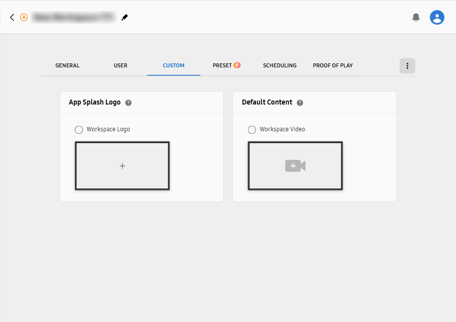 En Logo de pantalla de bienvenida de la aplicación, haga clic en la casilla de verificación Logo del espacio de trabajo o en el cuadro