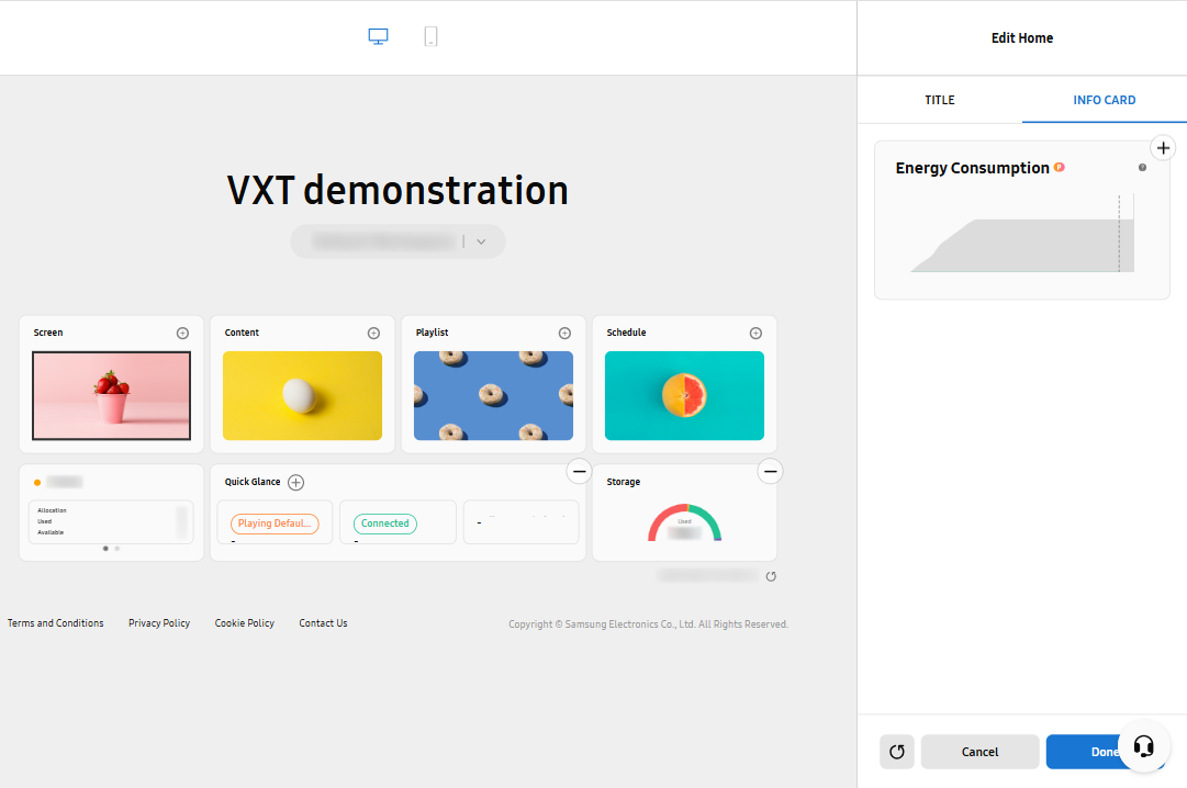 Haga clic en la tarjeta del menú VXT Analytics. Será redirigido al sitio web de Samsung VXT Analytics donde se analizaron los datos.