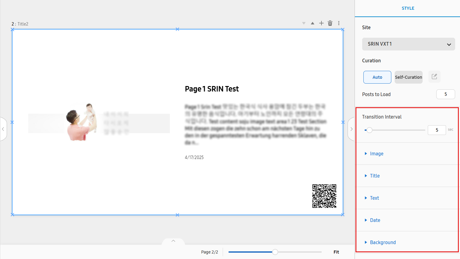 Par exemple, si vous définissez l'Intervalle de transition sur 10, chaque publication de nouvelles est affichée pendant 10 secondes jusqu'à ce qu'elle passe à la suivante