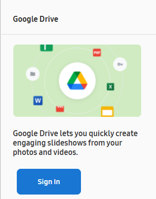 Samsung non è coinvolto in alcun contenuto Google Drive e non si assume alcuna responsabilità per il contenuto Google Drive non correlato a Samsung.