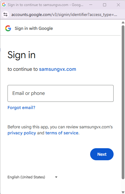 Samsung VXT CMS fornisce solo l'abbinamento con l'account Google dell'utente per visualizzare contenuti su un dispositivo di segnaletica dinamica e non è coinvolto nell'elaborazione effettiva dei dati.