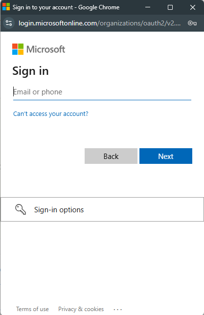 Vá para a página de login da Microsoft.