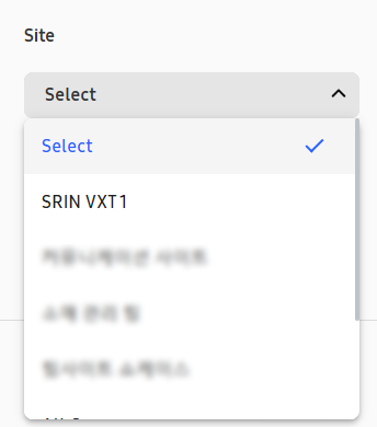 Selecione um site do SharePoint clicando no dropdown Site.